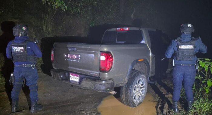 En seguimiento a las acciones implementadas, la camioneta fue localizada en aparente estado de abandono en una zona rural de la citada localidad, por lo cual fue asegurada y puesta a disposición de la Fiscalía General del Estado (FGE), a efecto de dar seguimiento a las diligencias correspondientes.