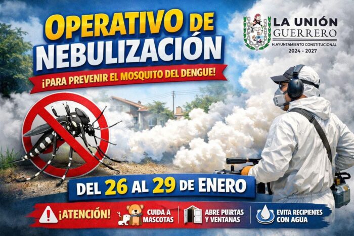 La Unión, Gro. 23 ene 2026.- Con el objetivo de proteger la salud de las familias y prevenir enfermedades transmitidas por vectores, el Gobierno Municipal de La Unión, encabezado por el presidente José Francisco Suazo Espino, mantiene un trabajo coordinado con el sector salud para fortalecer las acciones de prevención en las distintas comunidades del municipio.