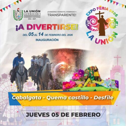 La Unión, Guerrero. 05 de febrero de 2026.- El presidente municipal José Francisco Suazo Espino, le invita a toda la ciudadanía a la gran fiesta del pueblo en honor a San Felipe de Jesús, La Expo Feria 2026 que estará iniciando hoy a partir de las 14 horas con grandes eventos campiranos con la cabalgata, el desfile de carros alegóricos por las calles de La Unión, el corte de listón y el baile popular.