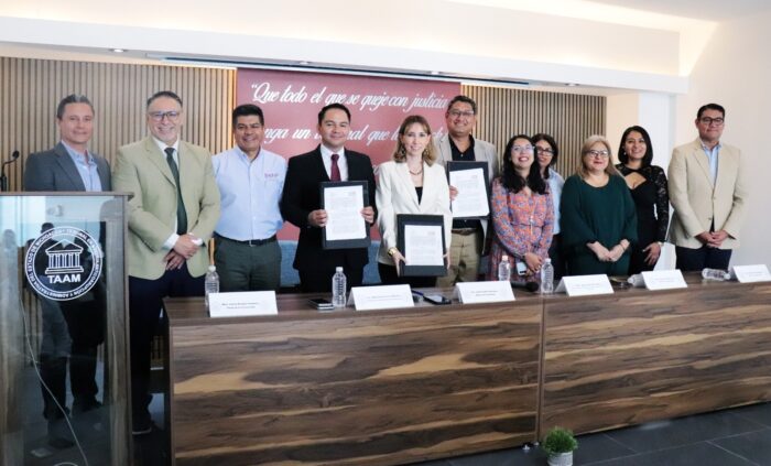 La magistrada presidenta del TAAM, Lizett Puebla Solórzano, destacó que ambos Organismos Constitucionalmente Autónomos han optado por “sumar esfuerzos para retroalimentarnos, en este caso, a fin de garantizar a todas las personas servidoras públicas del Instituto una defensa adecuada dentro de procedimientos de la materia administrativa”.
