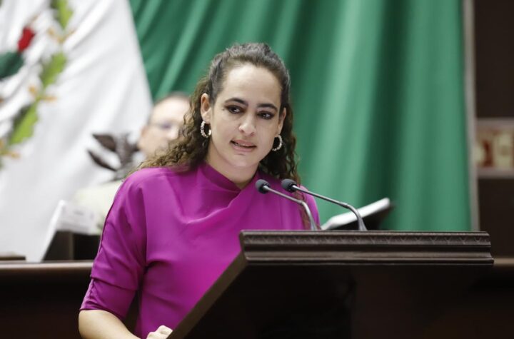 Morelia, Michoacán a 08 de octubre de 2025.- Desde la tribuna del Congreso del Estado, la diputada Sandra Arreola Ruiz,...